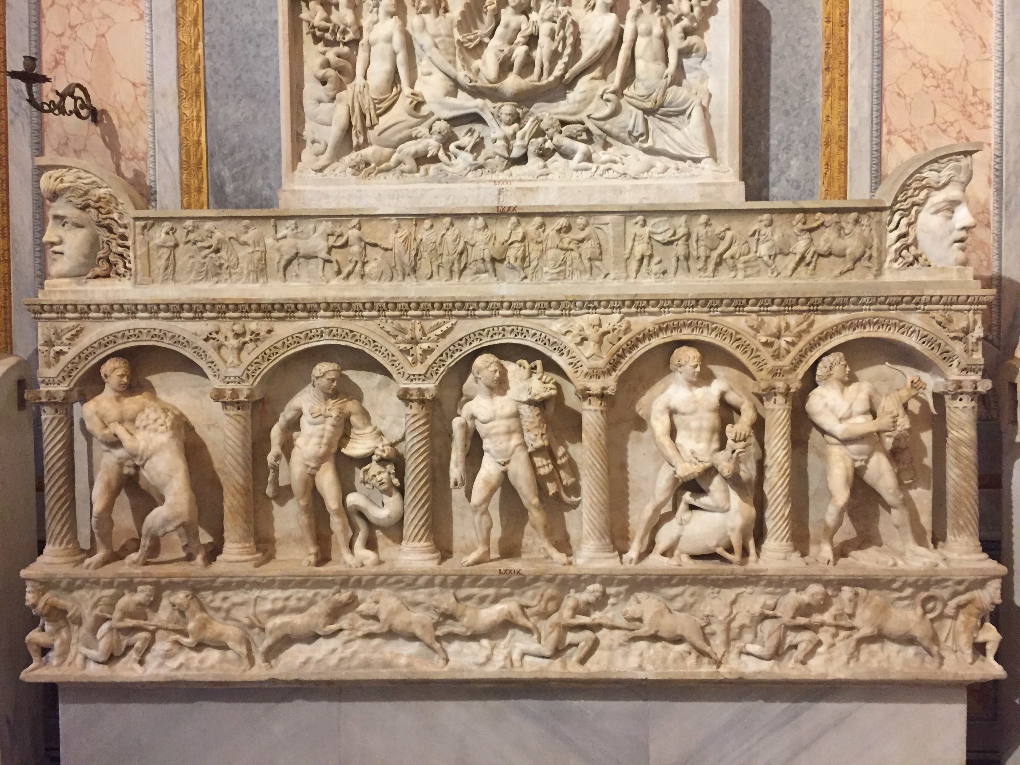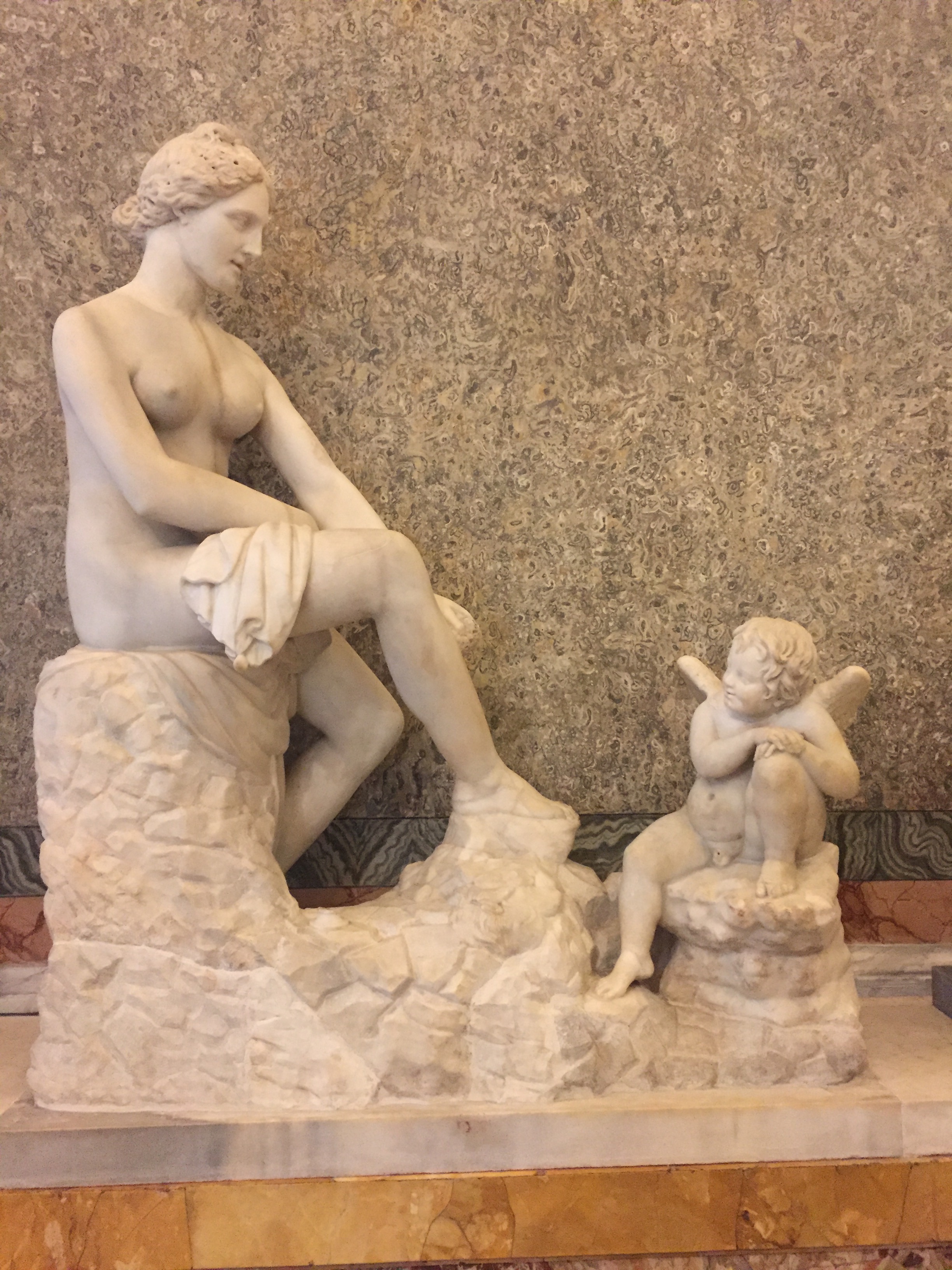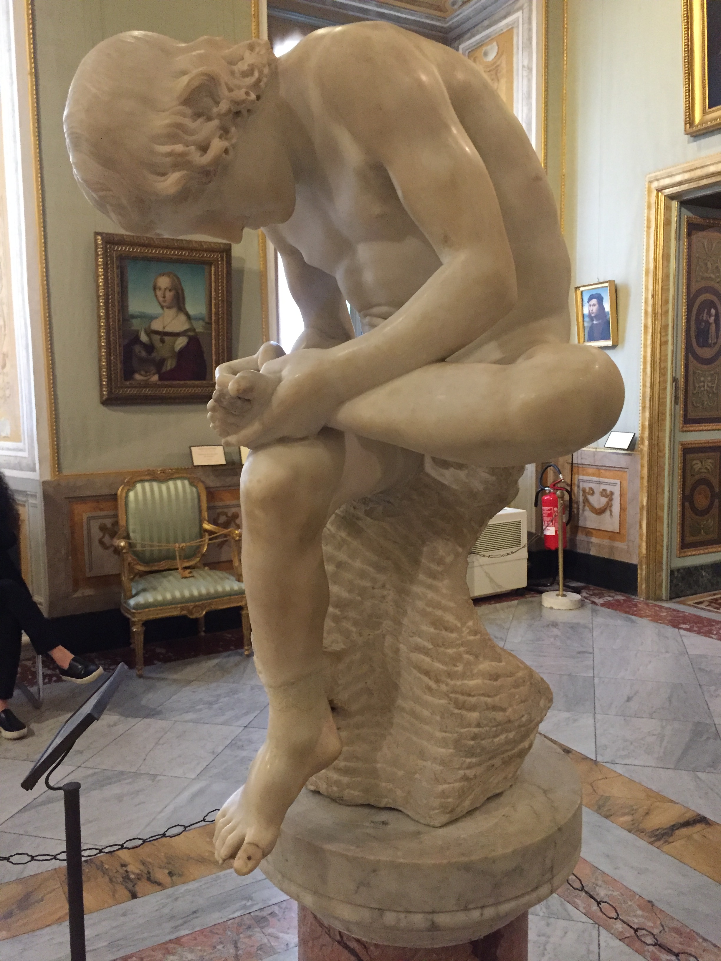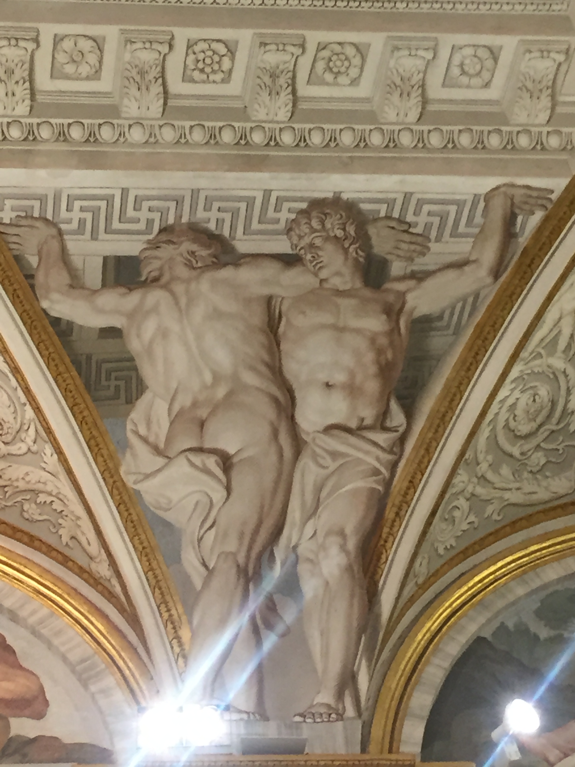 Auch auf meiner „must see“-Liste: die „Galleria Borghese“. Mein Bruder warnte mich noch vor: „Da musst du unbedingt das Ticket vorher reservieren!“ Jaja, dachte ich und wollte mich zeitlich nicht festlegen. Inzwischen weiß ich: unbedingt Tickets vorher reservieren!!! Ich hatte nur unglaubliches Glück, denn als ich dort antanzte, um Eintrittskarten für den nächsten Tag zu kaufen, stellte ich fest, dass die gesamte folgende Woche bereits ausgebucht war. Just in dem Moment war eine einzige Karte noch abrufbar. Also entschied ich mich das Kaffee-Trinken mit meinem Bruder zu verschieben und die Chance gerade mal noch eine Stunde durch die Räume zu laufen, anzunehmen. Und es hat sich mehr als gelohnt, denn wer auf Barock steht, dem geht das Herz auf! Und wer nicht auf Barock steht, muss zugeben, dass in dieser Zeit unfassbare Kunstwerke entstanden sind. Hier treffen Gemälde von Caravaggio auf Skulpturen von Bernini. Aber auch die großen Renaissance-Künstler Raffael, Tizian, Bellini oder Cranach sind bis zum Sattsehen vertreten! Zudem sind die Räume an sich schon einen Besuch wert. Die wunderbar dekorierten Räumlichkeiten mit Deckengemälden, kostbaren Marmorverkleidungen sowie Tür-, Tisch- und Wanddekorationen lassen in eine andere Zeit eintauchen- und Parallelen zur Gegenwart ziehen: An einer Decke sind Männer gemalt, die das Gewölbe stützen- mit einer definierten Muskulatur, die heutige Muckibuden-Besucher vor Neid erblassen lassen 😉 Spaß beiseite: die Galerie zählt zu den berühmtesten und wertvollsten privaten Kunstsammlungen der Welt und hat eine hochspannende Geschichte, die Italien und Frankreich nicht unbedingt freundschaftlich miteinander verbindet- Stichwort Napoleon…